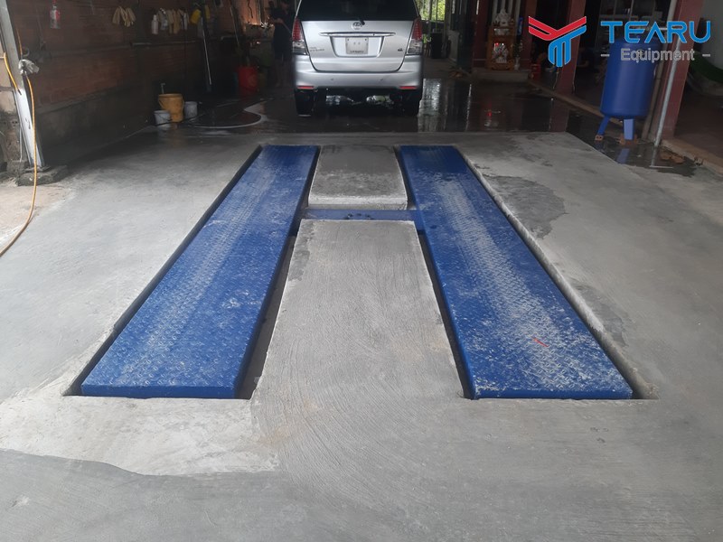 Lưu ý: Vì bàn nâng âm nền không có gờ bảo vệ, do đó, việc chạy xe lên cầu phải chính xác trọng tâm. Điều này đảm bảo an toàn khi nâng – hạ xe để vệ sinh làm sạch.